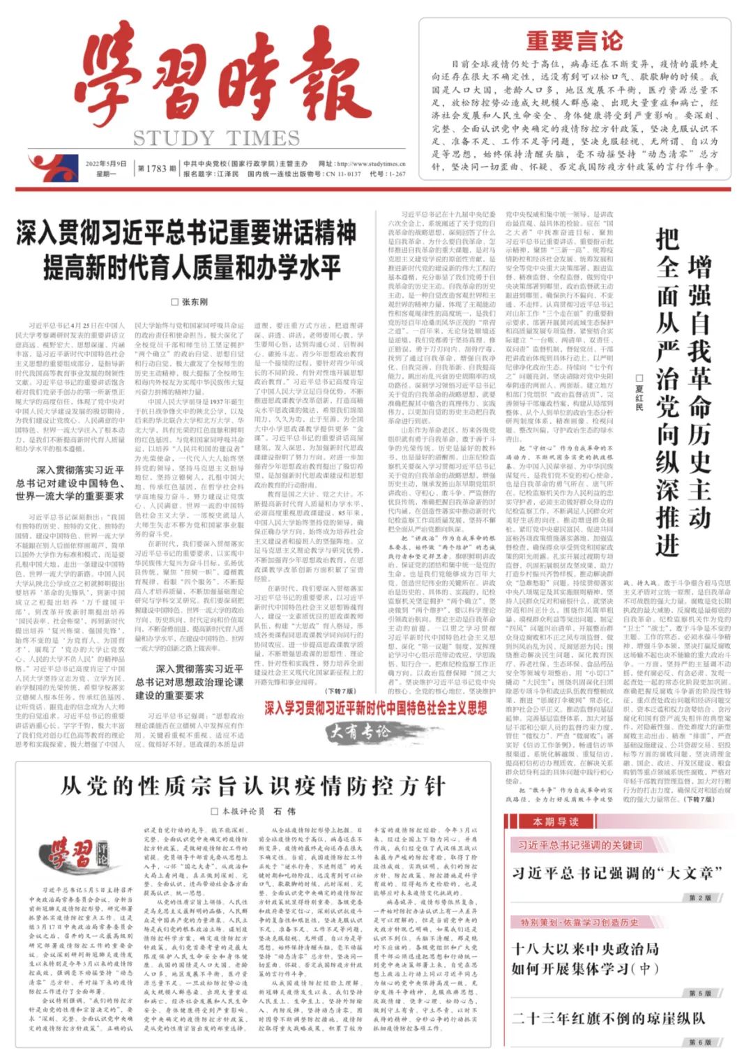 今天,《学习时报》头版头条