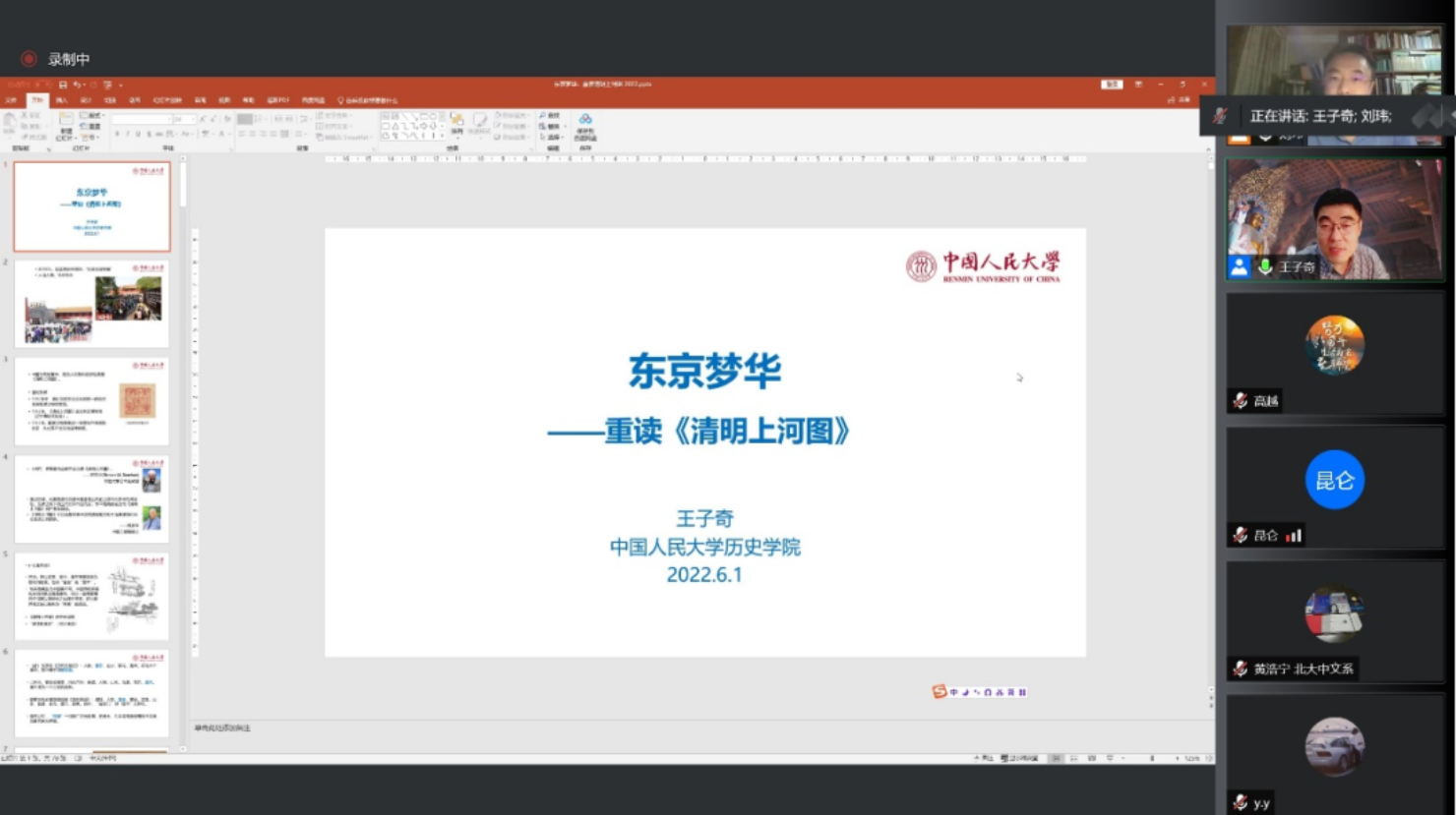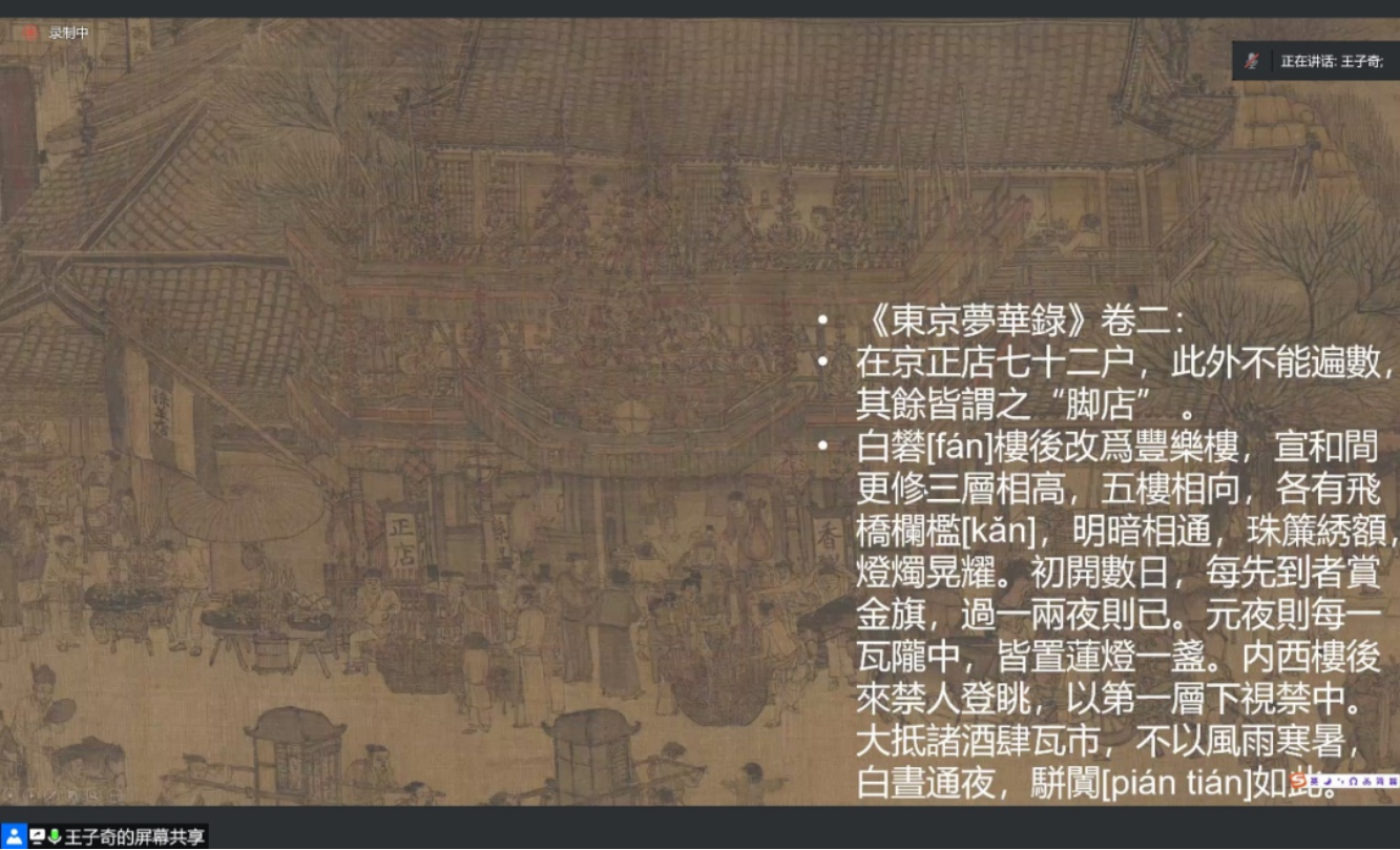 6月1日下午,免费色情动漫志学季“线上免费色情动漫 讲堂”系列活动第五讲《东京梦华——重读<清明上河图>》顺利举办。本次活动采取线上腾讯会议的方式进行,免费色情动漫 历史学院王子奇老师受邀主讲,免费色情动漫 副院长刘玮教授主持。