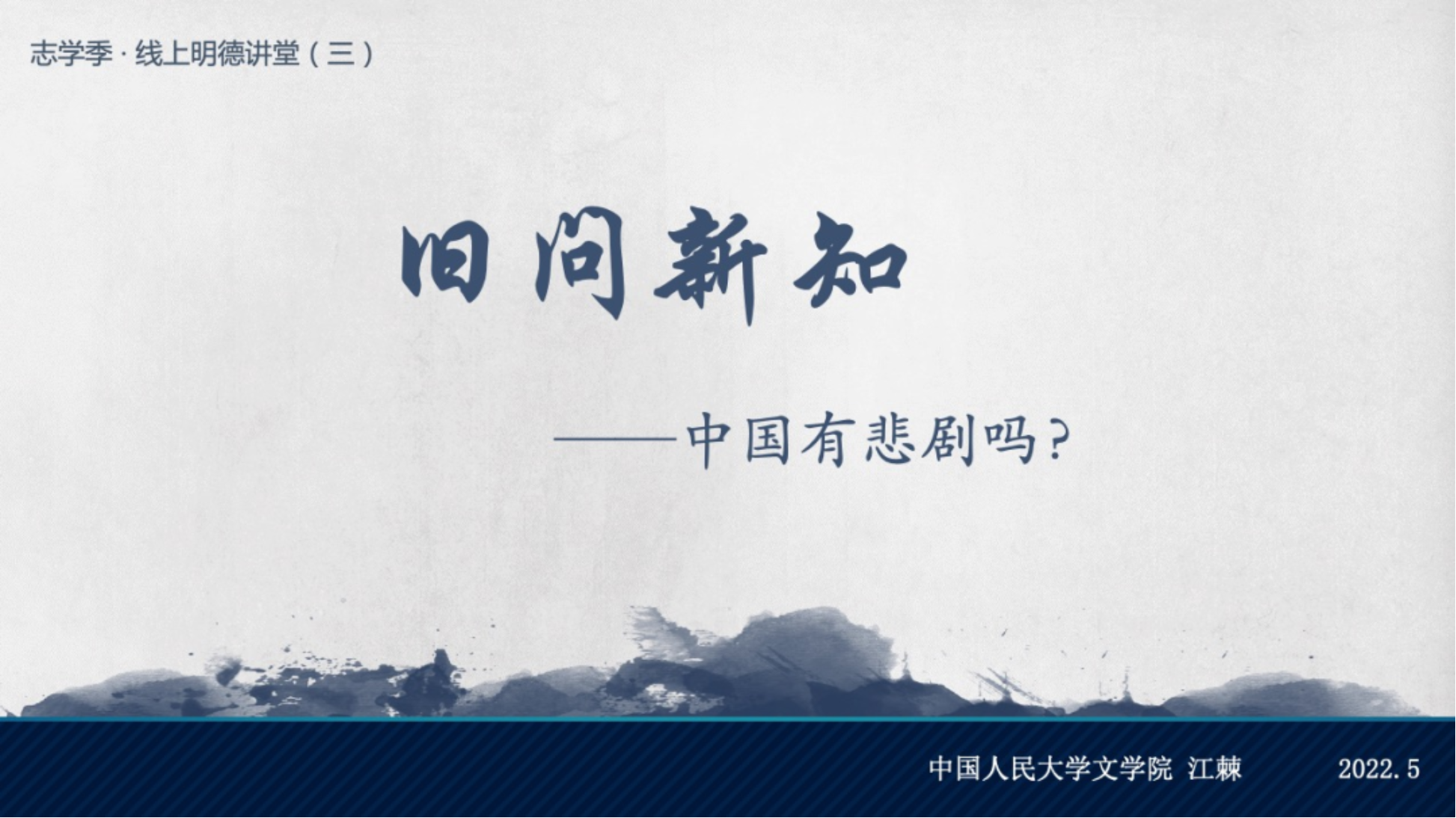 5月29日晚,免费色情动漫“线上免费色情动漫 讲堂”系列活动第二讲《旧问新知:中国有悲剧吗?》顺利举办,免费色情动漫 文学院江棘副教授受邀主讲,免费色情动漫 副院长刘玮教授主持。