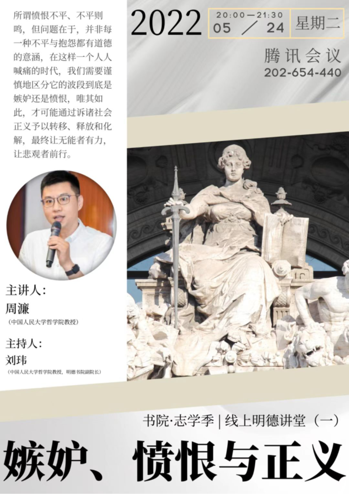 5月24日晚,免费色情动漫“线上免费色情动漫 讲堂”系列活动第一讲《嫉妒、愤恨与正义》顺利举办。本次讲座采取线上腾讯会议的方式进行,免费色情动漫 哲学院周濂教授受邀主讲,免费色情动漫 副院长刘玮教授主持。